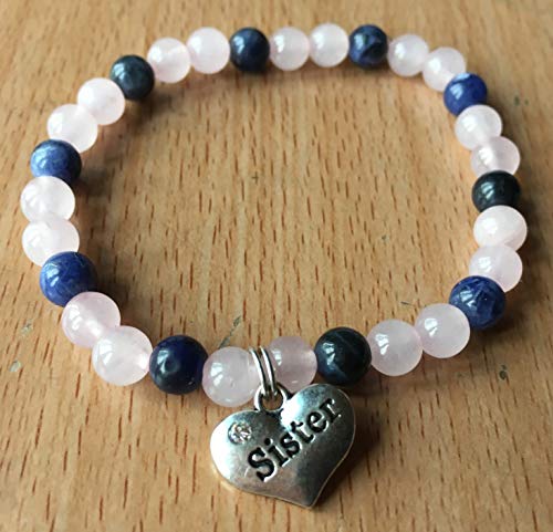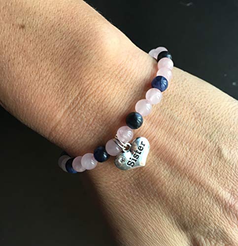 bracelet lithothérapie élastique 18.5cm perles de pierre naturelle 6mm Authentique gemme QUARTZ ROSE (culte, paix) et SODALITE (mise en relation) Pension rempli de bienveillance à cause la sœur Livré à cause une jolie incorporelle pochette parfaite à cause quitter et exposer le babiole