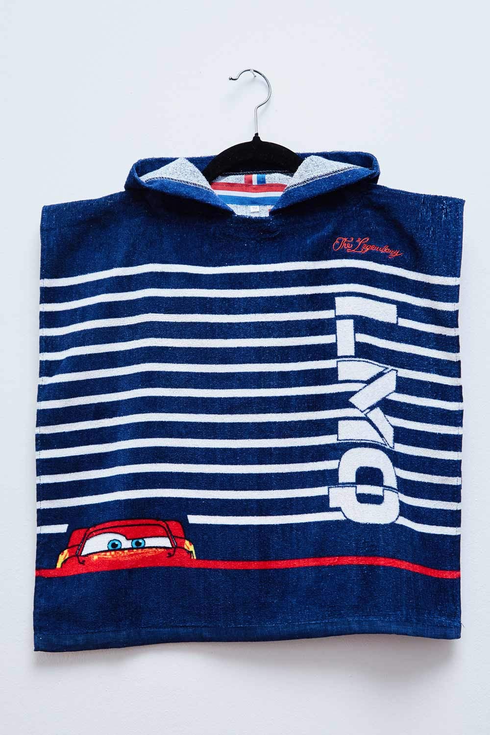 Le poncho est bleu et montre le héros du film The Legendary Lightning McQueen.