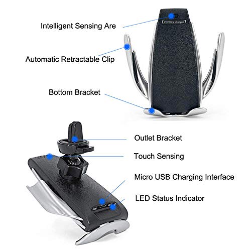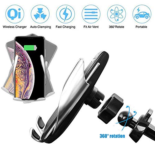 Chargeur Sans Fil Voiture Support Monter Automatique Serrage, IR Support de Téléphone Air Vent 360° Rotation Compatible…