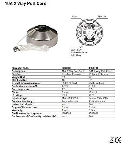 Knightsbridge Interrupteur à tirette 2 voies en chrome brossé