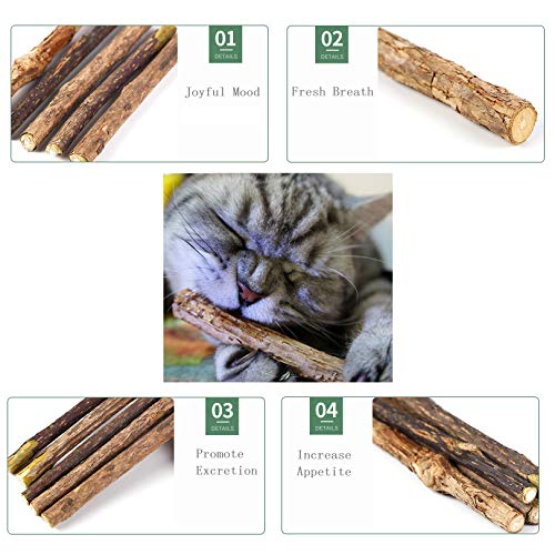 Les bâtons d’herbe à chat sont 100 % en bois naturel de la graminée de vigne argentée (vigne argentée également appelée Matatabi). La graminée de vigne argentée est cultivée à cause les régions montagneuses d’Asie et a longtemps été connue environ un attractif à cause chats.