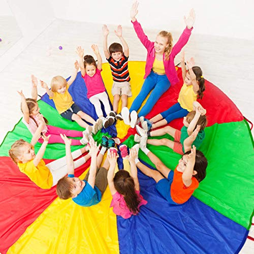 。◕‿◕。 Taille du parachute: diamètre de 6 pieds, 8 poignées distinctes réparties uniformément autour du jeu de groupe (Enseigner le tour de main et la coopération)