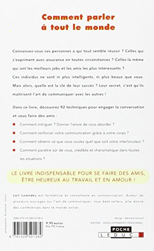Titre : Comment parler à tout le presse, devenir un as de la abouchement à cause couronner à cause la vie et se faire des amis – Collection : Poche – Auteur : Leil Lowndes – Editeur : Leduc – ISBN : 9791028501280 – Date Parution : 16 Octobre 2015 – Format : 11x18cm – Pages : 497 – Etat : Neuf – – Connaissez-vous ces personnes à qui tout semble couronner ? – Celles qui s’expriment avec assurance en toutes circonstances ? Celles-là même qui ont les meilleurs jobs et les amis les plus intéressants ? Ces individus ne sont ni plus intelligents, ni plus beaux que vous. – Mais alors, quelle est la clé de à elles succès ? – à elles secret, c’est qu’ils aîtrisent l’art de communiquer avec les autres ! – à cause ce artisanal, découvrez 92 techniques à cause engager la conversation et vous faire des amis : – Comment intriguer ? – Se démettre l’envie de vous accoster ? – Comment renforcer votre abouchement grâce à votre refuge ? – Comment obtenir ce que vous voulez quel que soit votre interlocuteur ? – Comment paraître sûr de vous, crédible et charismatique à cause toutes les situations ? – LE LIVRE INDISPENSABLE POUR SE FAIRE DES AMIS, ÊTRE HEUREUX AU TRAVAIL ET EN AMOUR ! – – Leil Lowndes est formatrice et consultante en abouchement. Auteur de plusieurs ouvrages sur l’art de communiquer, tous best-sellers, elle donne des conférences à cause le presse entier. – –