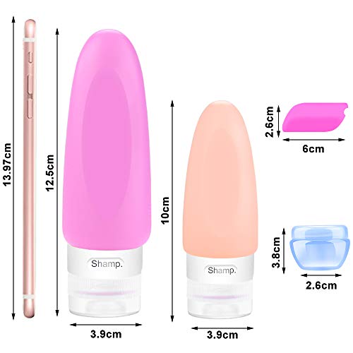 Premium Safe Matériel Fait de la FDA a approuvé, ce qui est en silicone souple, compressibles et + remplissable matière plastique (uniquement pour les bouteilles de voyage 2Pcs 10ml), est la résistance super compression, légèreté, durable et imperméable à l’eau. pourrait être réutilisé aussi. Il est parfaitement adapté pour le shampooing, lotion, revitalisant, se laver le visage, le lavage du corps, crème solaire, etc. 100% BPA qualité alimentaire sans silicone, est également en toute sécurité