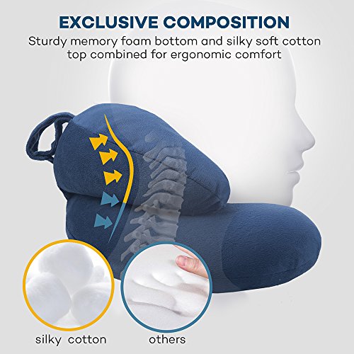 Rempli de mousse à mémoire de forme dessous à cause une base solide, la partie haute est fourrée de coton ultra doux – qui s’adapte mieux à votre ligne de cou que les autres coussins de cou, en offrant le même niveau de soutien dessous.
