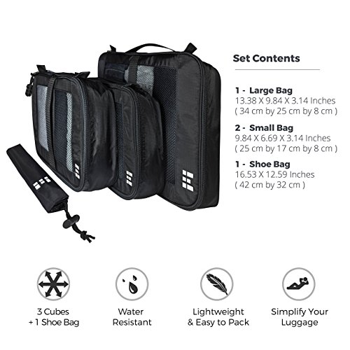 LE SYSTÈME DE VOYAGE POUR MAXIMISER VOTRE ESPACE DE RANGEMENT – L’ensemble se compose de 3 cubes (1 Large et 2 Petits) dans la compression de vêtements et le rangement d’accessoires. Comprend également une housse à chaussures assortie et résistante à l’eau afin de séparer vos baskets ou votre linge abrégé.