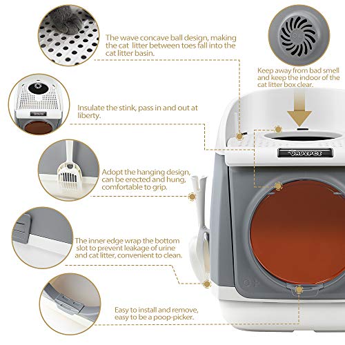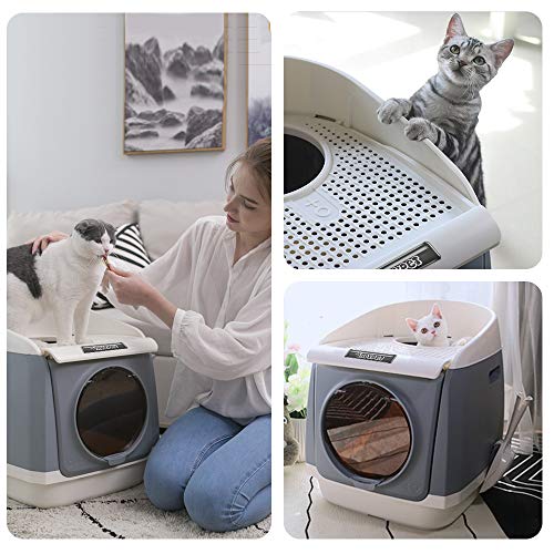 Design Unique – Deux portes pliantes, vision achevée, proche à nettoyer le sable hygiénique des chats ; Deux portes dans entrer et sortir. Ouvrez la fenêtre du haut, suivez les sauts naturels du chat et entraînez-le dans le rendre encore plus amusant.