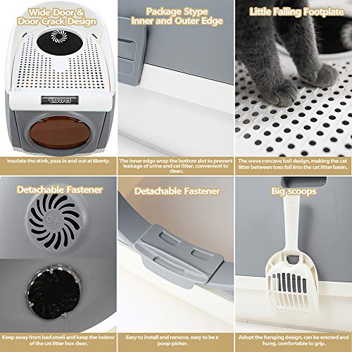 DADYPET Bac à Litière pour Chats, Maison de Toilette Chat Double-Porte, Entrée Frontale et Sortie Supérieure, Grande…