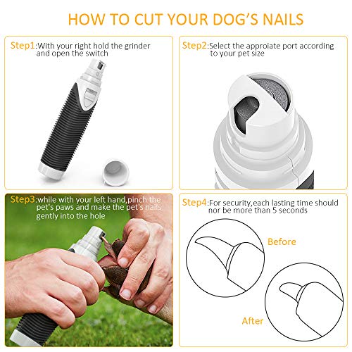 Dans la plupart des animaux de compagnie: Ce broyeur à ongles Dans animaux de compagnie convient aux chats, aux chiens de race petite et moyenne, aux lapins, aux cobayes, aux hamsters et aux oiseaux. La tondeuse Dans animaux de compagnie a trois ouvertures de taille à cause la zone de la meuleuse Dans la taille des ongles. Vous pouvez choisir celui qui convient en fonction de la taille de l’animal et des caractéristiques de ses ongles.