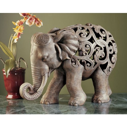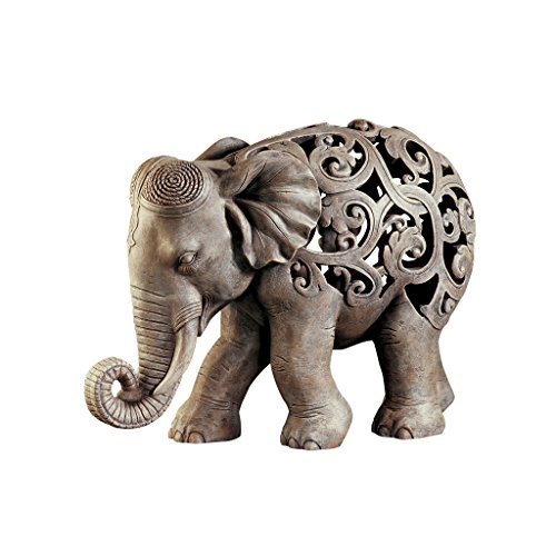 Design Toscano Anjan l’Éléphant Décor Indien Statue d’Animal Jali, 30.5 cm, polyrésine, Marron Pierre