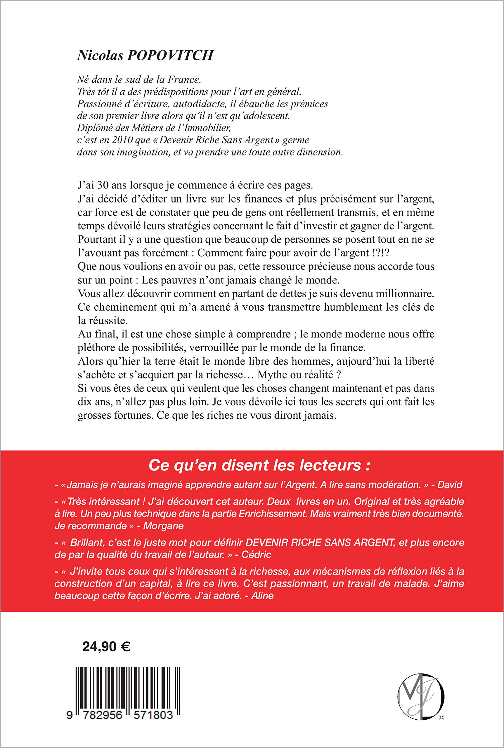 PRESENTATION DE L’EDITEUR : Nicolas Popovitch sigle ici de sa plume un précis atypique. A peine édité, Devenir étendu sans Argent, se calibre parmi les meilleures ventes.