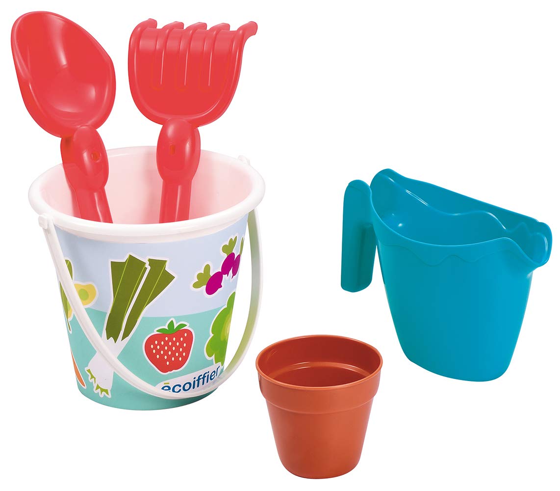 LE CONTENU DU PACK : Cet ensemble se compose d’un chariot roulant garni d’un seau décoré, 1 pelle, 1 râteau, 1 broc et 1 pot.