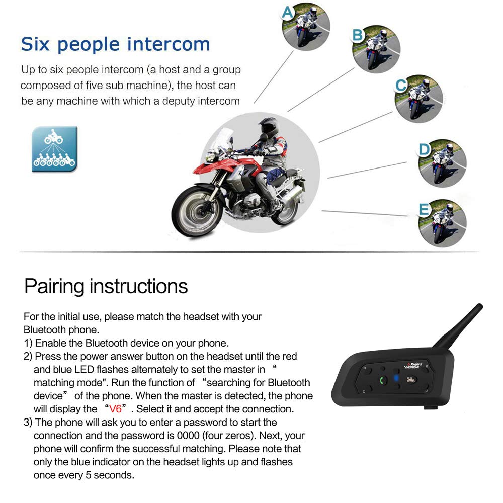 [6 pilotes] 1 hôte et 5 auxiliaires. Une fois le couplage effectué, l’hôte peut choisir l’un des 5 participants pour parler. Seuls 2 utilisateurs peuvent communiquer en même temps. (L’hôte ne peut pas parler avec 5 autres appareils en même temps)