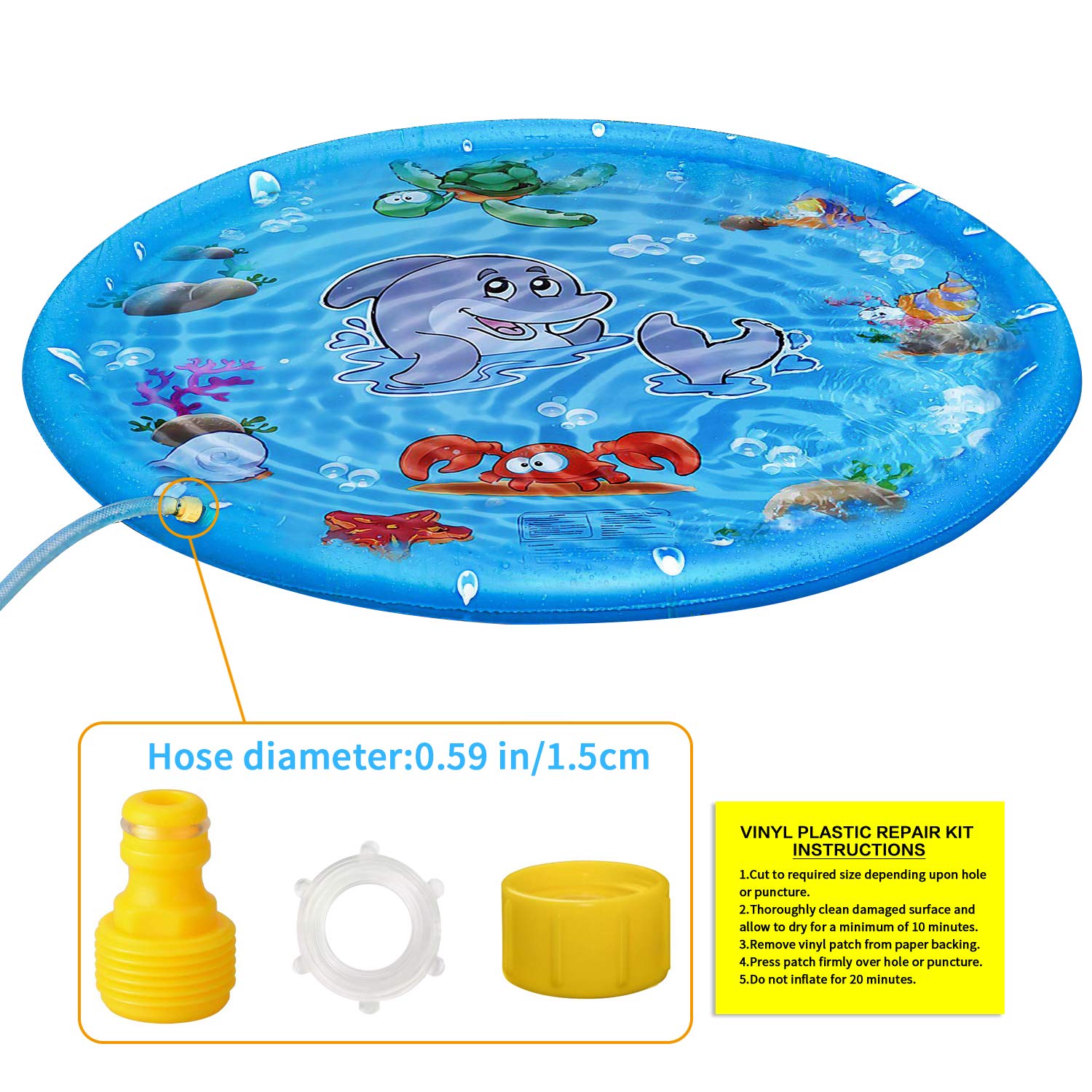 ÂGE APPROPRIÉ: 170cm de diamètre tapis de pulvérisation d’eau convient à cause 2-3 enfants. à cause les enfants âgés de 1 an et plus. Compréhensible à plier et Compréhensible à transporter.