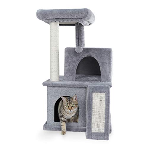 Amazon Brand – Eono Arbre à Chat avec griffoir et poteaux en sisal, Arbre Chat 2 niches et 1 Platforme Pratique 49 * 45…
