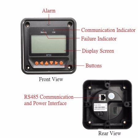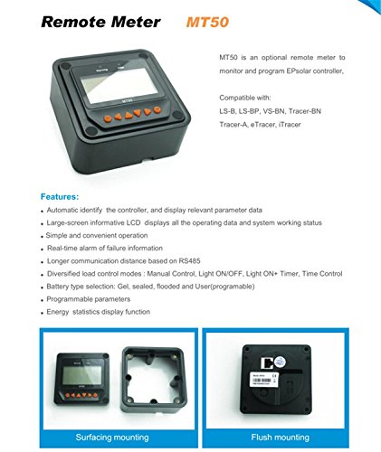 MT50 ist ein optionales Fernmessgerät zur Überwachung und Programmierung von Epere-Steuerungen. Dieses Gerät ist nur mit Tracer-A-, Tracer-BN-, LS-B-, LS-BP-, VS-BN-, eTracer- und iTracer-Controllern kompatibel und zeigt detailliertere Parameter als der Controller.