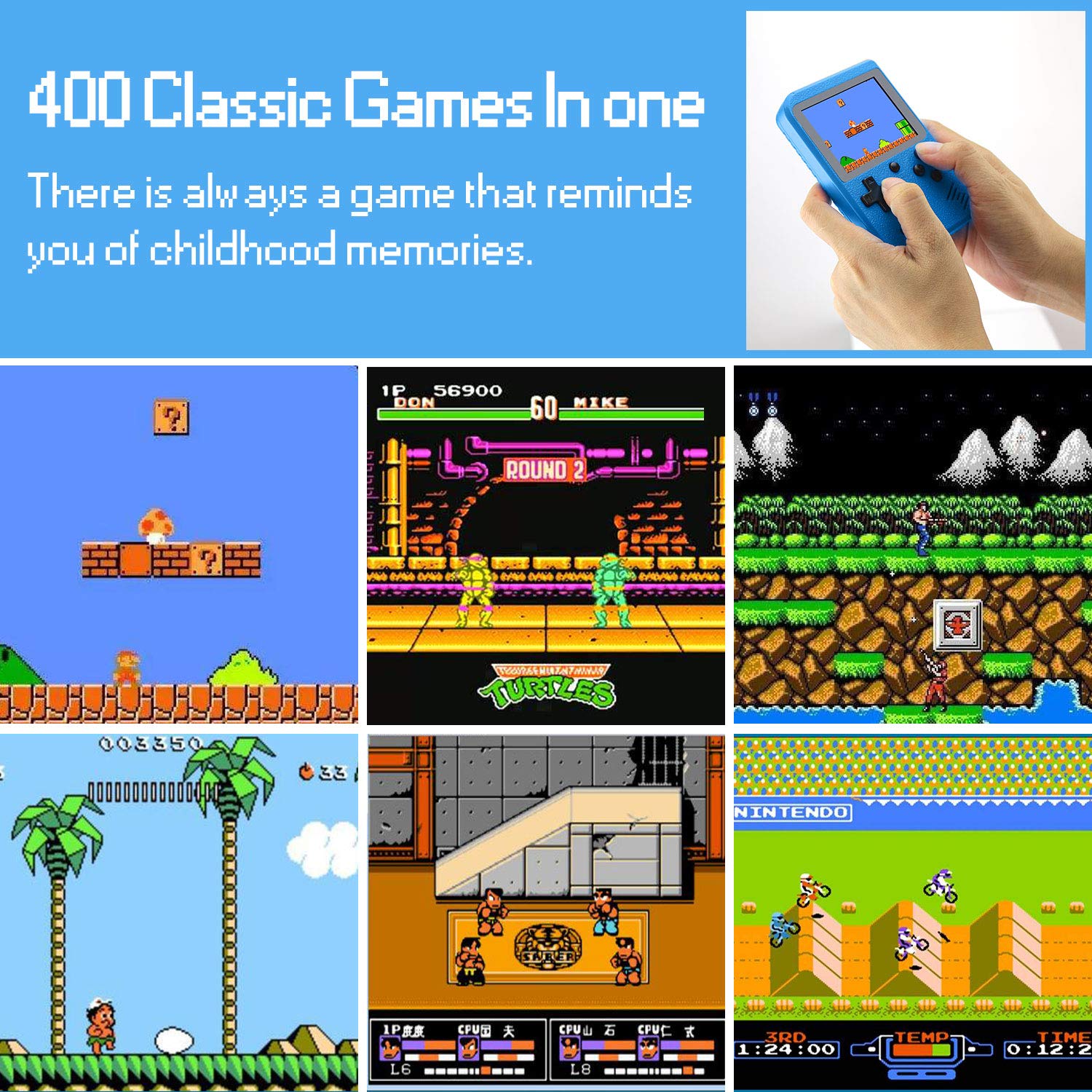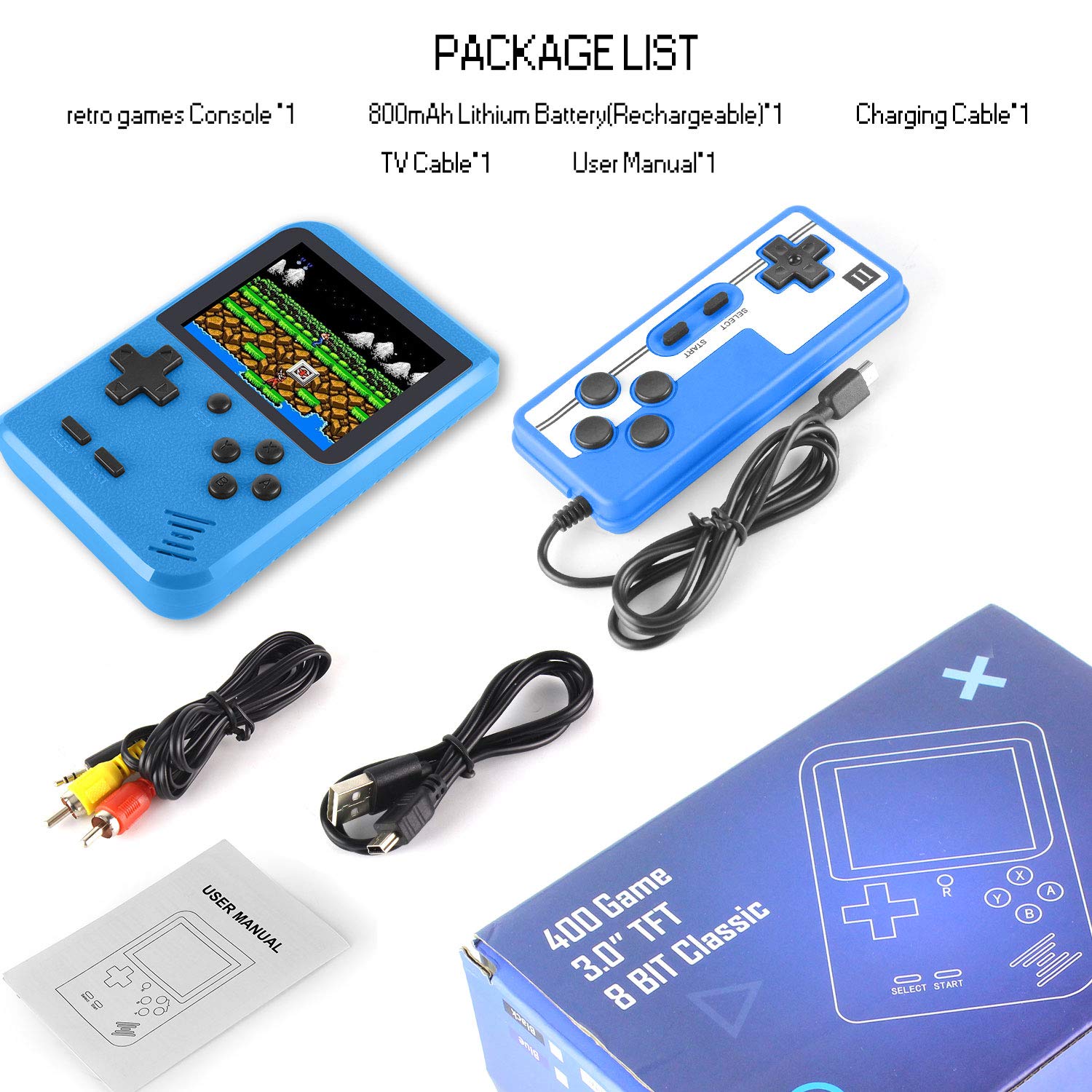 ▲ 400 jeux super classiques intégrés — 400 jeux Retro FC intégrés, y compris Super Mario, Contra, Tetris et autres jeux FC classiques. Ramenez vous et vos enfants au plaisir de votre enfance.
