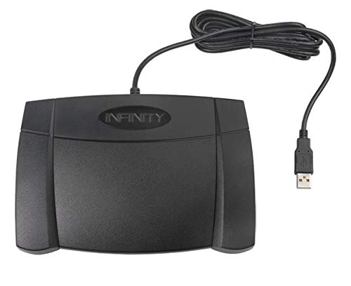 Nouvelle pédale Infinity IN-USB-2 avec puce IC version 14 conçue à cause la compréhension d’utilisation et la capacité de gérer un entraînement de dictée / transcription lourd avec peu ou pas de abattement du pied.