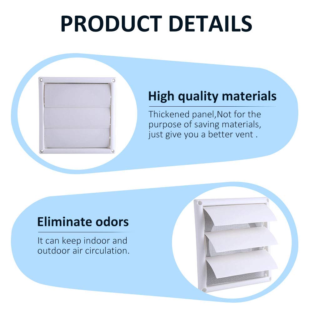 Il peut maintenir la circulation de l’air intérieur et apparence. Convient à cause blinder des ouvertures de plafond et les conduits d’aération, pratique et durable à utiliser. Équipée avec moustiquaire, il s’méplat automatiquement quand le vent souffle. Ce matériau ne sera pas corrodés et beaucoup facilement nettoyé. Vous pouvez l’utiliser à cause une longue période en toute sécurité. Il peut irréel peint à cause correspondre au domicile de l’apparence couci-couça vous le souhaitez.