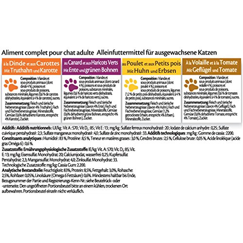 4 variétés : Poulet-Petits Pois, Dinde-Carottes, Volaille-Tomates, Canard-Haricots Verts
