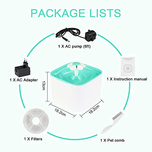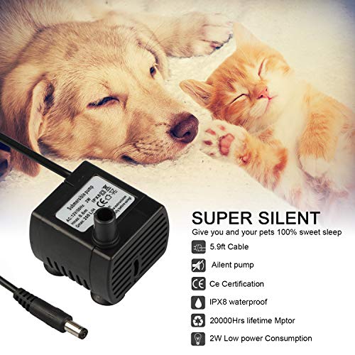 ✿Ultra-Silencieux et Abondante✿ Fontaine d’eau potable adopte une pompe à eau basse tension et haute efficacité à 12V, le courant est de 150l/h. En fonctionnement, pompe a un faible décibel et ne génère pas trop de résonance. Ne vous dérange pas, surtout quand vous et vos animaux dorment la nuit