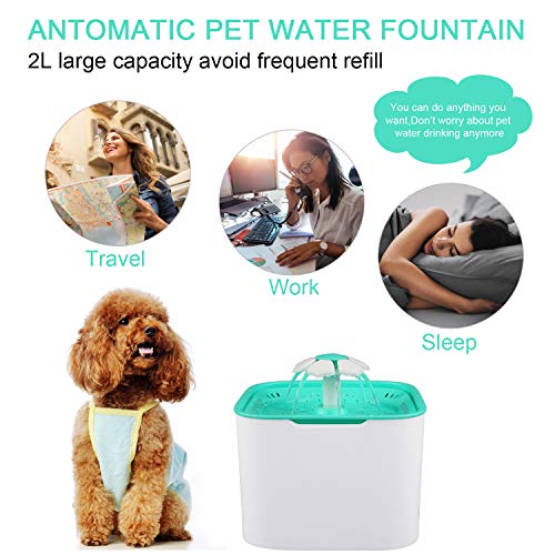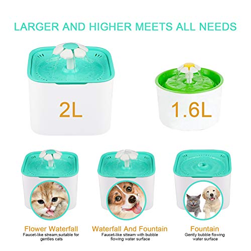 ✿2L Grande Capacité et 3 Types de Débit d’Eau✿ Fontaine à cause animaux est amusante, les chiens, les chats ou les oiseaux peuvent abreuver pendant 5 à 7 jours et Fontaine à eau comporte 3 modes de débit: coulant, gargouillis et fontaine. Vous pouvez basculer entre différents modes de débit en fonction de la buse