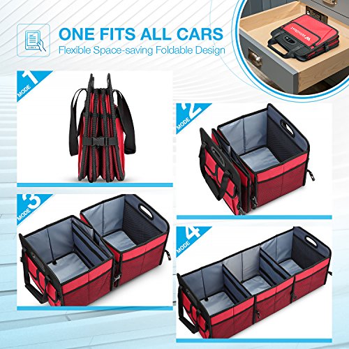 Cet organisateur de stockage automatique de coffre est composé de 2 couches de polyester Oxford et d’un panneau dur. 3 bases rigides amovibles dans un soutien supplémentaire. La conception durable à 3 couches avec coutures renforcées peut contenir jusqu’à 100 lb.