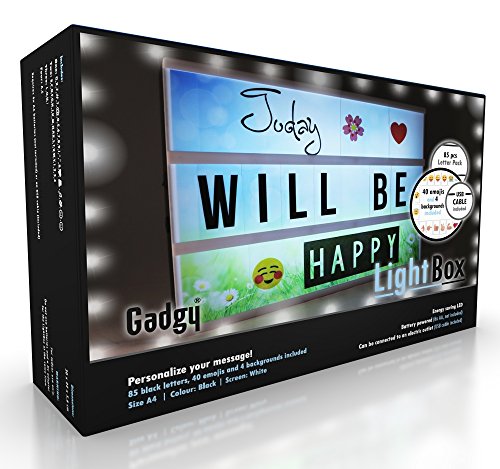 Le Gadgy Cinematic Lumière Box: Une aide-mémoire brillante, nostalgique et retro à cause vos messages personnels ou même à cause vos espaces commerciaux. Personnaliser votre message avec le Gadgy LightBox! Possibilités illimitées.
