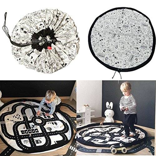 Gazechimp Tapis de Jeu Bébé Enfant Impression Sac de Rangement en Toile Rond pour Couchage Marcher Maison 95CM…