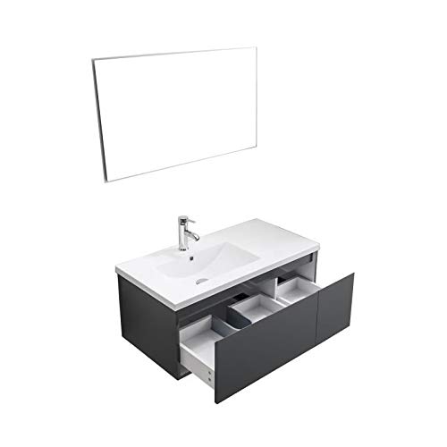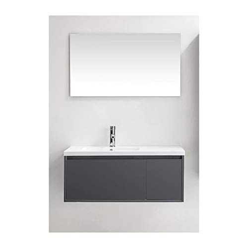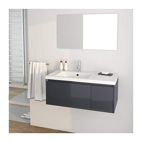 GIRONA Ensemble salle de piscine laqué gris céleste style et design vent – Dissertation en MDF et vasque en résine blanche – Composé d’ 1 souple sous-vasque L 90 x P 45 x H 35 cm ensuite 2 tiroirs soft close, 1 voisin vasque avenant d’entrevue L 90 x P 46 x H 18 cm et 1 étendu miroir L 90 x P 50 cm.