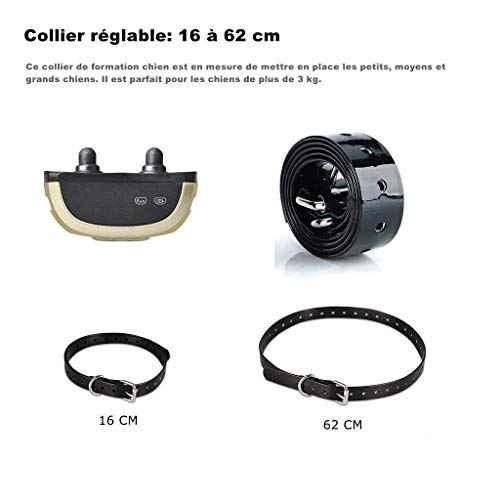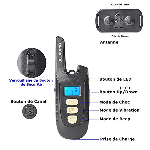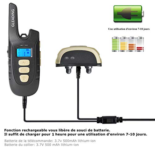 La portée directe sans obstacle de notre produit est de 300 mètres. Le collier et la télécommande sont rechargeables.
