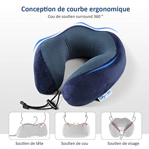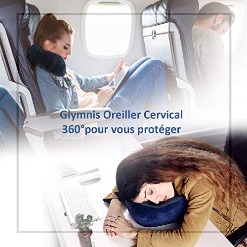 Glymnis Coussin de Voyage Oreiller de Voyage en Mousse à Mémoire de Forme avec 360 Tête et Cou Support Idéal pour Avion…