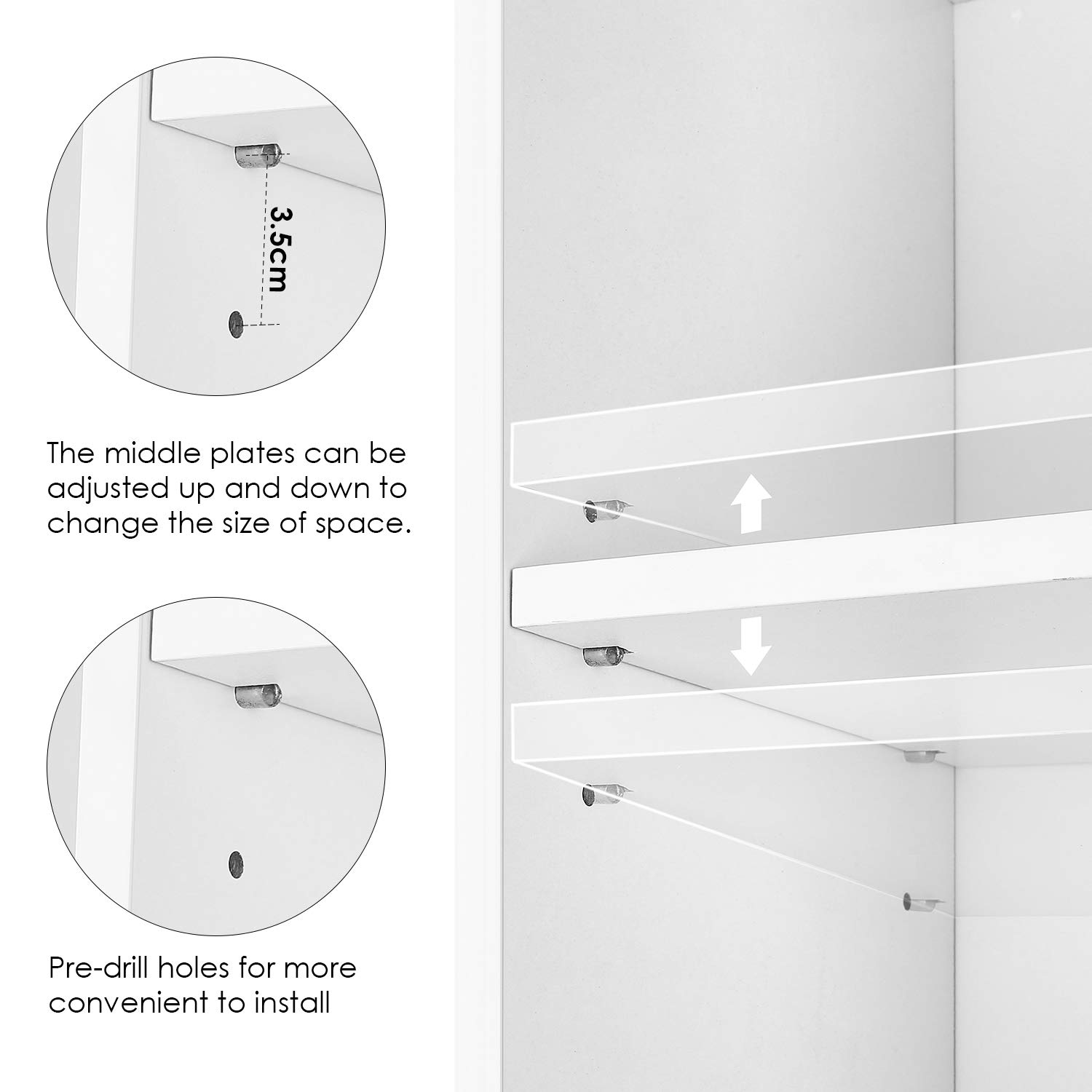 Technologie magnifique : La finition de cette étagère est bien soignée avec le papier mélaminé, la surface de l’étagère est lisse et régulière, résistante aux éraflures et facile d’entretien.