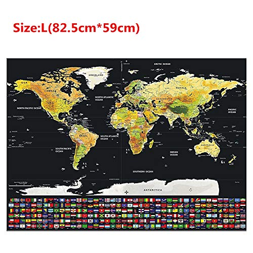 Guide de voyage parfait: Nos cartes ont des couleurs vives, des détails soignés et font un beau cadeau que tout aventurier va adorer. Nous nous sommes assurés que les drapeaux des pays sont exacts, que les États sont décrits et même les îles sont représentées. Utilisez votre carte du monde à gratter à cause planifier votre prochain voyage et suivre vos progrès à cause le monde entier.