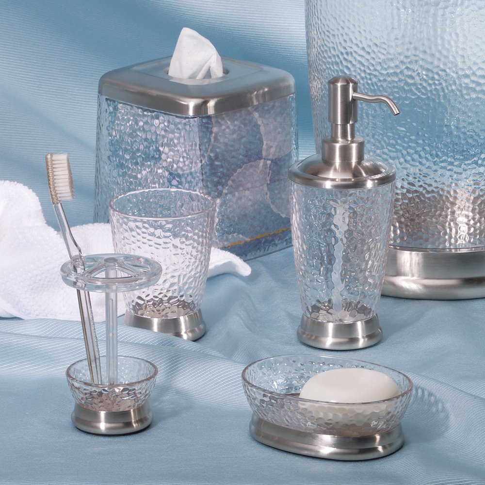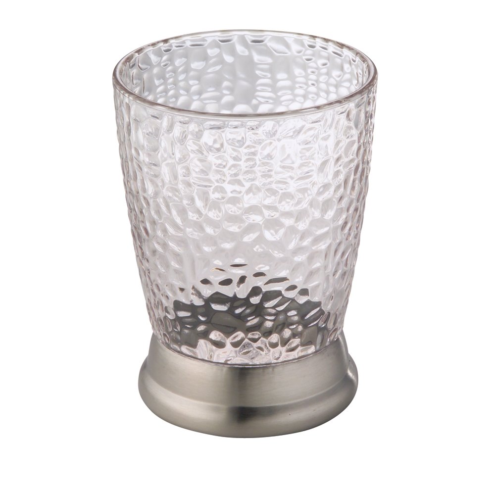 InterDesign Rain, Gobelet pour coiffeuse de salle de bains – Transparent / Acier inoxydable brossé