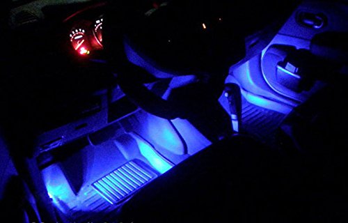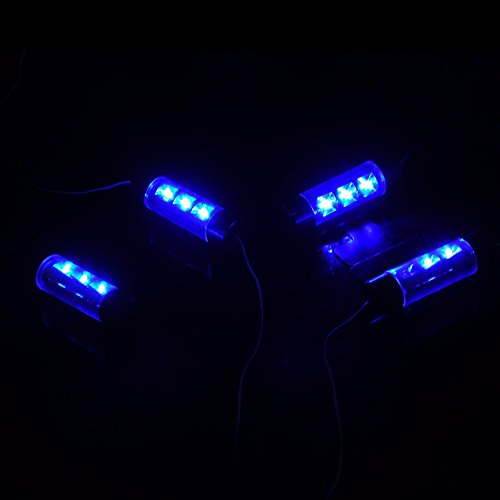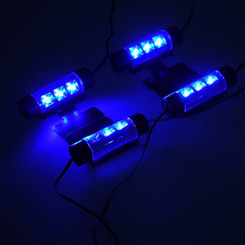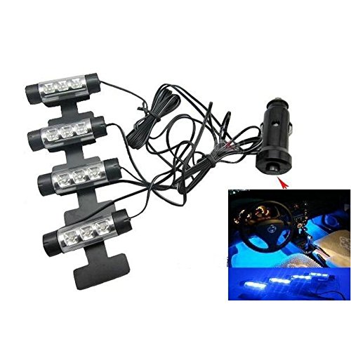 1、4 en1 feux de l’atmosphère, chaque lumière comprend 3 LED bleu, non-voyant dans la pourboire intérieure de voiture / auto, vous offrant une atmosphère exotique et romantique.