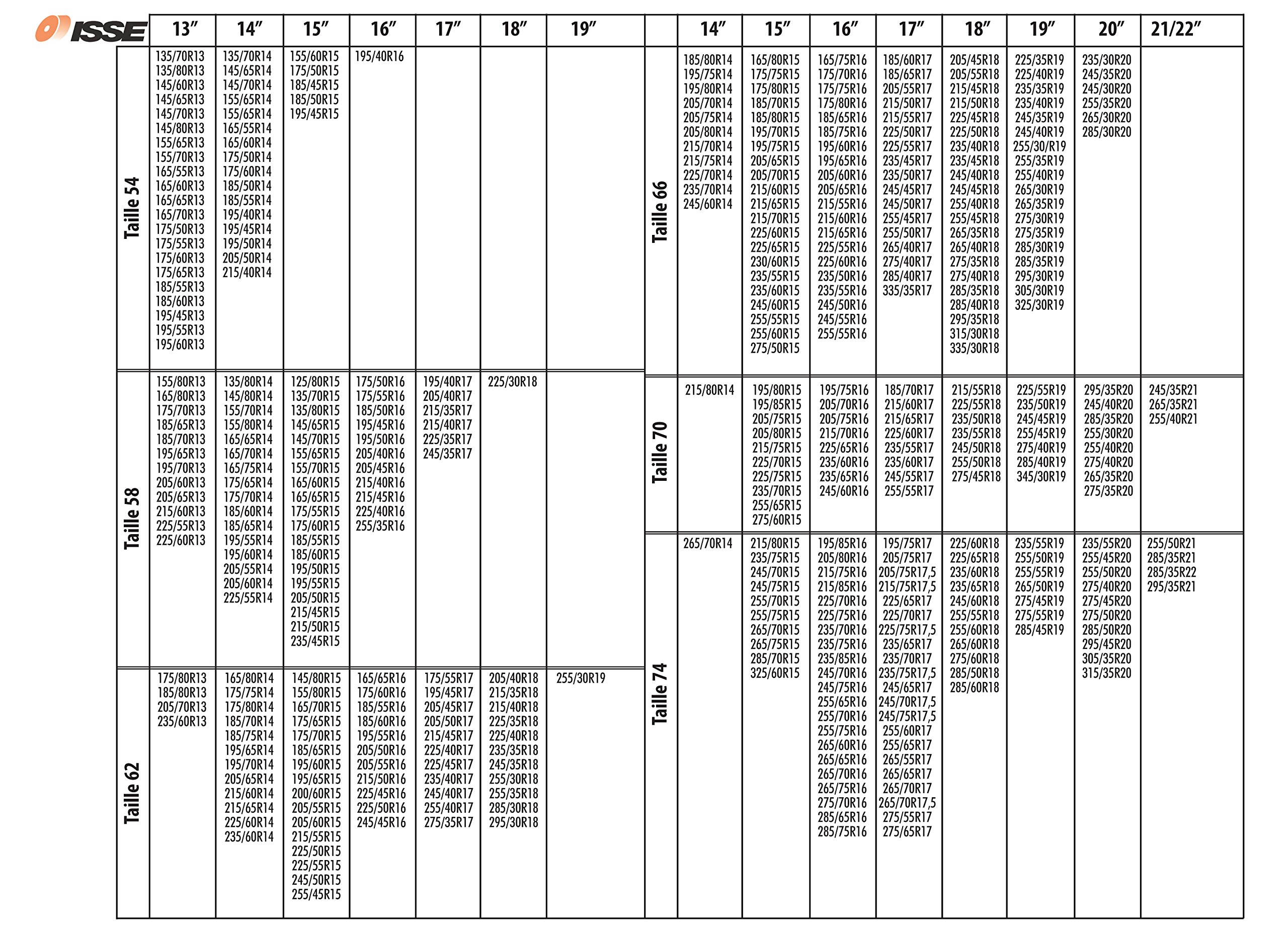 Voir photo afin de trouver la taille de chaussette correspondant à vos pneus