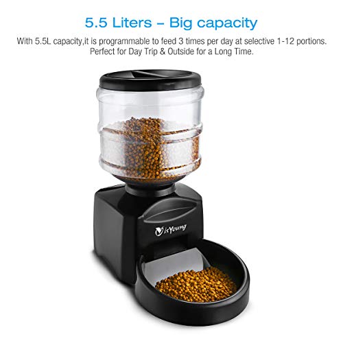 【Capacité de 5,5 L 】- isYoung vous fournit une capacité d’entonnoir de 5,5 litres dans que vous puissiez l’utiliser quasiment compartiment de rangement dans garder les aliments secs et frais. C’est très pratique dans les personnes qui ne sont pas à la maison pendant la journée.Les batteries non incluses.