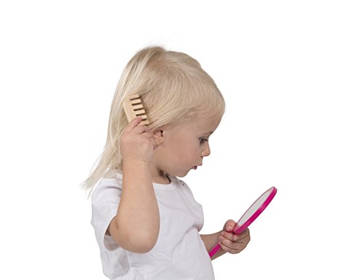 Contient 9 accessoires en bois : fourmillant miroir, palette de maquillage avec pinceau et miroir, 2 rouges à lèvres, 2 vernis à ongles, 1 crayon noir à cause les yeux, 1 parfum, 1 peigne.