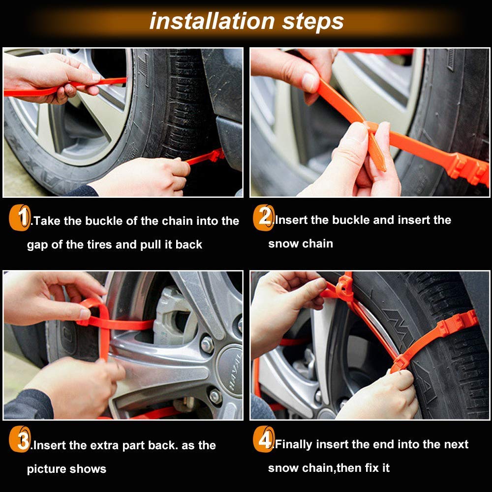 🚗🚗【Chaînes à neige de haute résistance】:Fabriqué en matériau Nylon 66, clous antidérapants résistant à l’usure, résistant aux basses températures et qui n’endommagent pas les pneus, moins bruyants, faciles à porter et robustes. Résistant aux basses températures de moins 50 degrés Celsius. Tous les détails sont à cause vous et votre famille afin d’assurer la sécurité. Ce sont des outils nécessaires à cause voyager, la neige, la boue, l’escalade, la glace et d’autres urgences