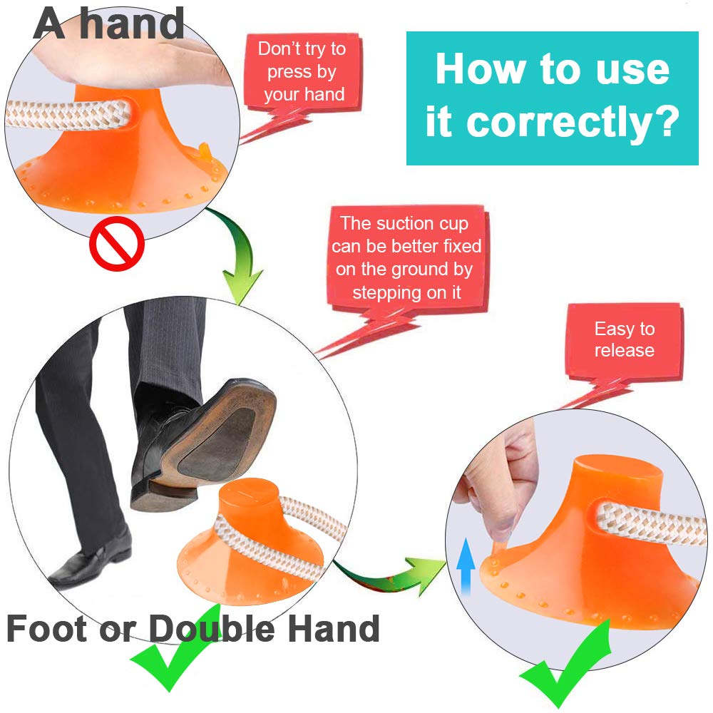 Veuillez appuyer sur la ventouse avec votre pied. Ce jouet dans chien ne convient pas aux chiens trop grands. Un chien coquin mordra la corde. Si la corde du jouet dans chien est mordue par le chien, vous pouvez reconnecter le jouet à mâcher avec une nouvelle corde.