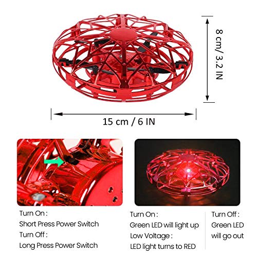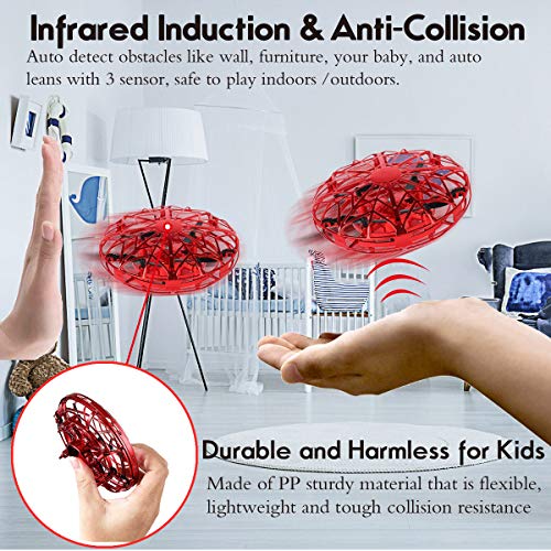 ✔Capacité Sensorielle Améliorée – 5 capteurs infrarouges équipés. Testez intelligemment la hauteur et la distance pour atterrir ou s’échapper automatiquement. Amélioré par rapport à l’OVNI volant normal d’une autre marque, pour plus de sécurité et de plaisir, laissez le jouet volant contrôlé dans votre paume plutôt que dans le chaos!