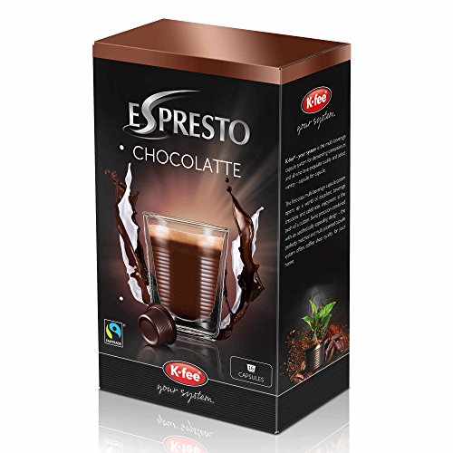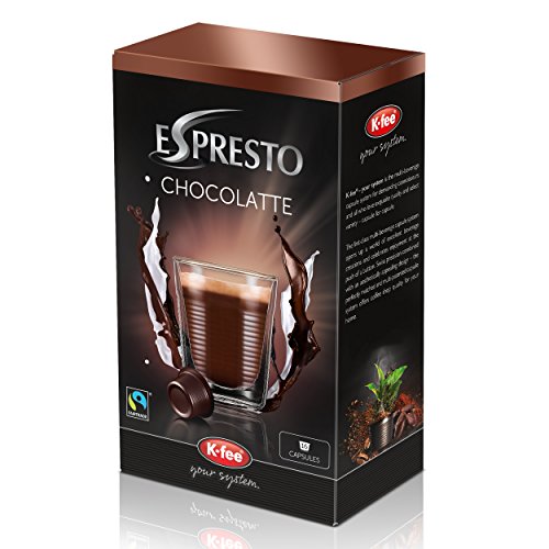 K-Fee Espresto Chocolatte, Eau-de-vie CacaotÃe Fairtrade, Chocolat, 16 Capsules: La sÃlection des meilleurs fÃves de cacao et de leurs oeuvre pacifique et mÃticuleuse font de chocolatte une merveilleuse Eau-de-vie chocolatÃe crÃmeuse. Les fÃves de cacao utilisÃes ici sont exclusivement issues du Combat Ãquitable. , IngrÃdients:K-Fee Espresto Chocolatte, Eau-de-vie CacaotÃe Fairtrade, Chocolat, 16 Capsules: Sucre *, poudre de cacao * (26%), lactosÃrum en poudre, pommade de coco, lait ÃcrÃmà en poudre, sel, phosphates de sodium équilibrant. * Combat Ãquitable , Acception:3 x 1 peloton K-Fee Espresto Chocolatte, Eau-de-vie CacaotÃe Fairtrade, Chocolat, 16 Capsules tandis 12,5 g de cacao