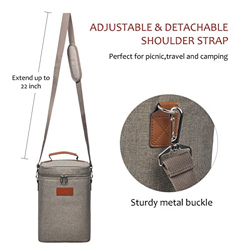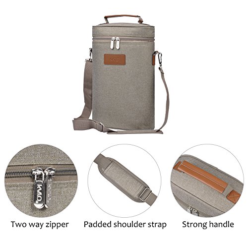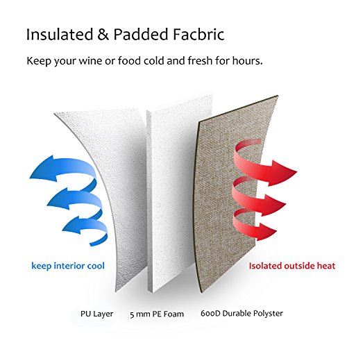 Pièces rembourrées avec isolation thermique : PU isolation intérieure avec rembourrage en mousse PE de garder deux bouteilles de vin bien fraîche pendant des heures. Ne peut pas mettre de la glace partir à l’intérieur, sac à glace vous recommandons d’utiliser à la place.
