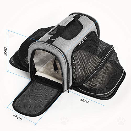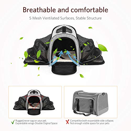 ♥【Double Espace Extensible】Expansion en forme d’éventail double face permettant d’ajouter 2 fois plus d’espace, pleinement satisfaire la forme arbitraire de l’animal se coucher. Vous pouvez également choisir de compresser un côté ou les deux côtés quand pas besoin d’un si grand espace, en fonction du confort de votre animal. Les fenêtres en mesh à 4 côtés sont ventilées et visibles, rendre votre animal respirer librement et plus à l’aise.
