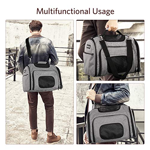 ♥【Sûr et Stable】Le transporteur de voyage pour animaux de compagnie approuvé par les compagnies aériennes est doté d’une construction robuste, comprenant coutures renforcées et lisses, fermetures à glissière robustes et attaches pivotantes en métal durable, une ceinture de sécurité dans la doublure empêche votre animal de sortir et gardez votre animal en toute sécurité. Les bretelles réglables et la poignée de transport aident à réduire le fardeau, maintient le sac de transport stable.