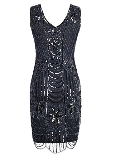 Kayamiya Women’s retro 1920s Perlé pailleté Feuille Art Déco Gatsby Flapper Robe
