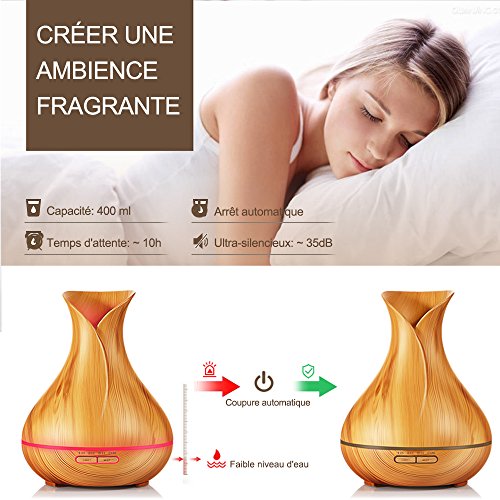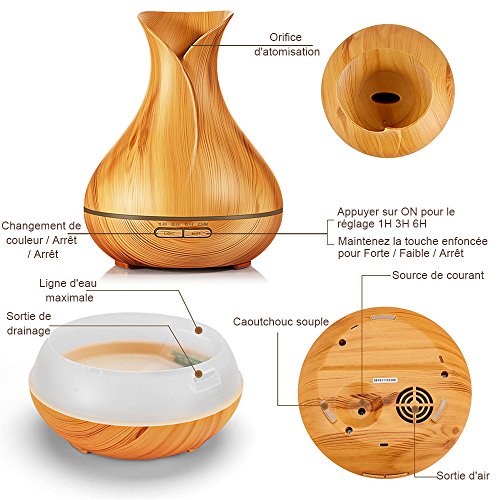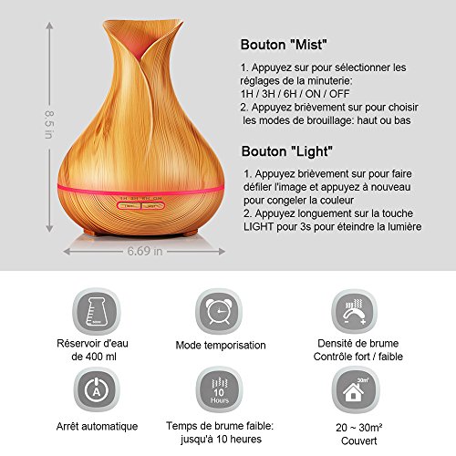 GRANDE CAPACITÉ: 400 ml de capacité fournissent 6,5 heures de brouillard intermittent, ou 3,5 heures de brouillard constant avec une fonction d’arrêt de voiture pour la sécurité lorsque l’eau est faible.
