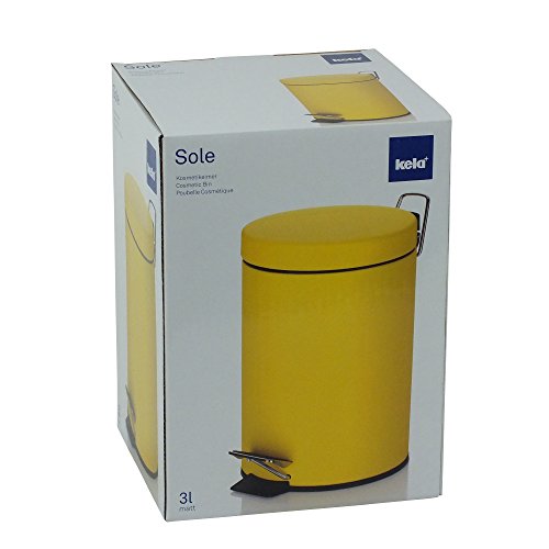 Kela 22725 poubelle de salle de bain à pédale, 3 litres, métal mat jaune, ‘Sole’