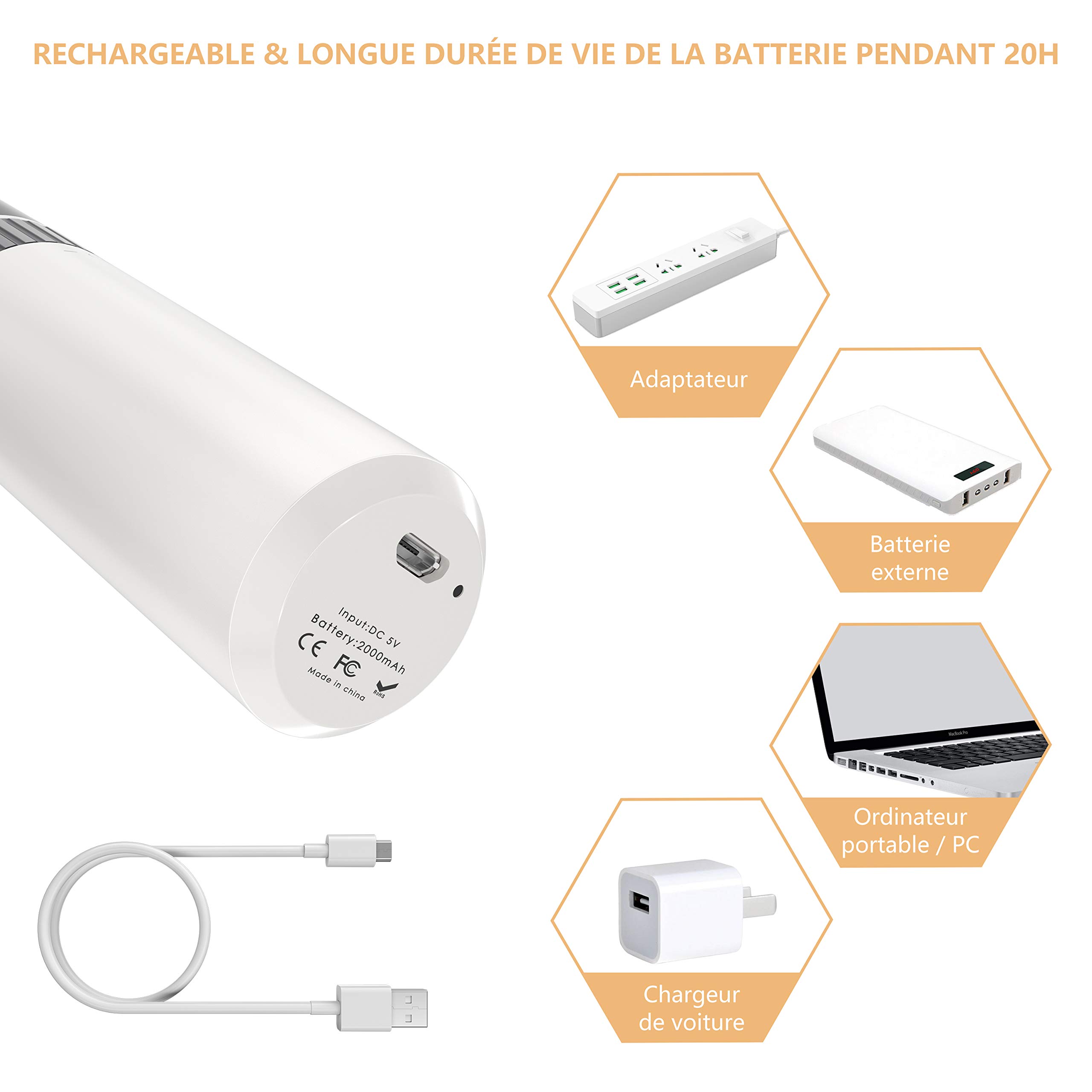 🐾MÉTHODE DE CHARGE – Écologique et économique. Le port de chargement USB remplace les batteries traditionnelles. Adoptée avancée batterie lithium polymère 2000mA, 3.5 heures de charge rapide, 2 heures d’utilisation. Gagnez du temps et de l’argent dans les animaleries, vous pouvez être un toiletteur pour votre animal à la maison!